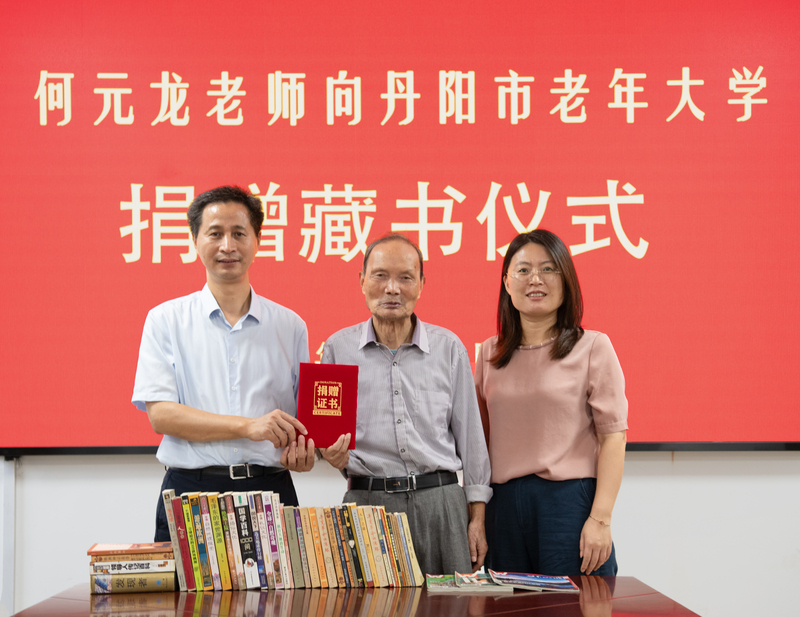 9月30日下午,一场特别的藏书捐赠仪式在丹阳市老年大学举行。民盟吕叔湘中学支部老盟员何元龙将收藏的900余本书籍赠予学校,希望为银发学员的学习生活注入新的活力。 现已85岁高...