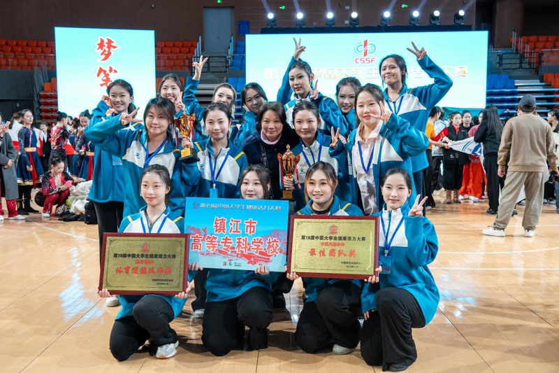 精研教学,团队协作显成效 苏老师始终将教书育人作为第一职责,深耕体育教学一线。她积极参与教学改革与创新,不断提升专业素养和教学能力。在江苏省教学比赛中,她与团队成员通力合作,凭借扎实的教学功底、创新的教学设计和出色的团队配合,荣获团队二等奖,充分展现了镇江高专体育教师队伍的专业水平与协作精神。 竞技赛场,屡创佳绩铸辉煌 苏菲菲老师悉心指导学生,将课堂所学转化为赛场上的拼搏力量。近年来,她带领学生在多项高水平体育赛事中奋勇争先,捷报频传: 在排舞领域,她指导的队伍在江苏省大学生排舞比赛中一举夺得团体第一名和集体自选第一名的骄人成绩;随后更在全国大学生第十九届健康活力大赛这一更高平台上,面对全国强手,斩获排舞规定项目第一名、自选项目第三名、串烧项目第二名,并最终助力学校夺得团体总分第三名的优异奖项。这一系列荣誉,见证了她与学生们辛勤的汗水与卓越的实力。 在中国风健身舞领域,她同样引领风潮。在全国性大赛中,她指导的团队荣获中国风健身舞团体第三名,并在单项赛中摘得“经典咏流传”项目第一名、规定项目第三名的佳绩。她本人也身体力行,在个人项目中获得第三名,实现了团队引领与个人示范的完美结合。