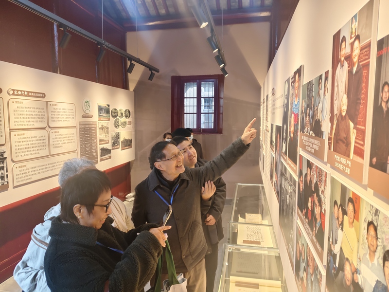 严惠宇先生是著名的爱国实业家,被尊称为“镇江三老”之一,一生致力于实业救国、教育兴邦,为地方经济社会发展作出了卓越贡献。参观过程中,陆承平夫妇与严氏后人仔细端详故居内的陈设,在陈列的老照片前,陆承平教授驻足良久。他指着一张张合影,向同行的后人讲述在此生活的片段,回忆起严惠宇先生在此接待宾朋的往事,言语间满是对过往时光的眷恋。众人一边聆听一边交流,通过史料与口述的交织,更真切地感受到家族的历史。