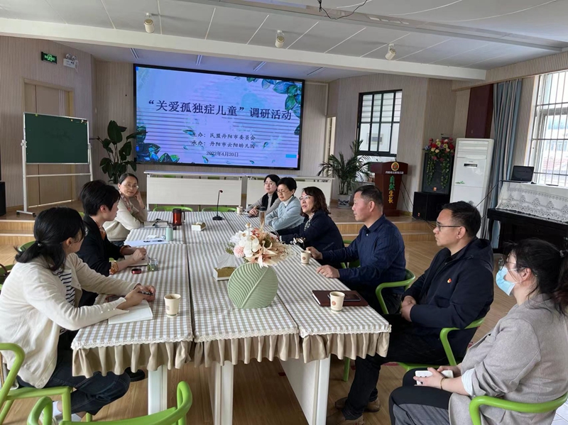 4月20日上午,民盟丹阳委员会在丹阳市云阳幼儿园组织开展了“关爱孤独症儿童”调研活动,民盟镇江市委副主委、丹阳委员会主委贺云华,副主委谢春华、胡云萍,原副主委刘云珍等11人出席调研会议。