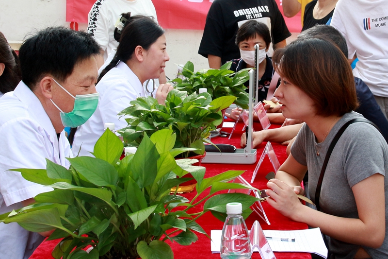 | 9月2日上午,镇江民盟同心服务进社区医卫专家义诊活动在结对共建单位香江花城社区开展。镇江民盟医卫专委会邀请内分泌科、妇科、耳鼻喉科、血液科、中医保健科的8位盟员医卫专家为社区居民提供免费健康服务。