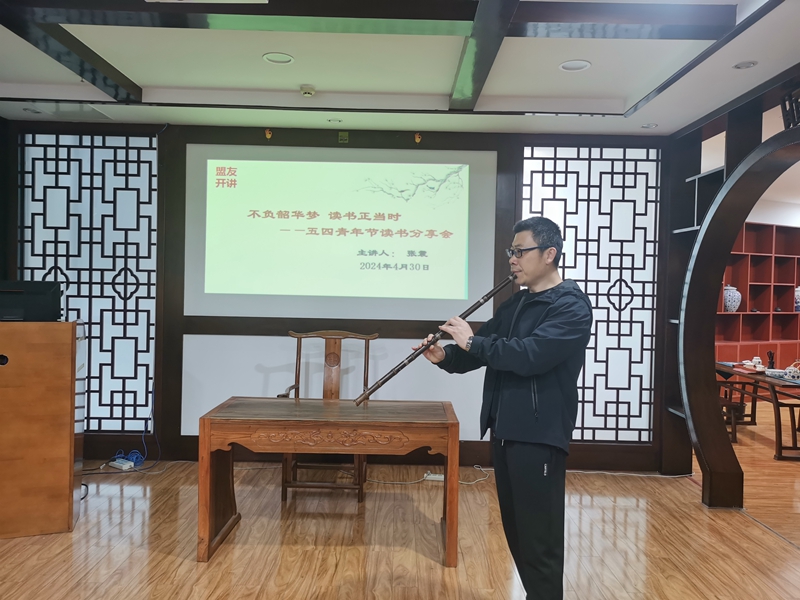 本次活动由句容支部的张震老师主讲。开讲前,张老师现场为大家演奏了洞箫,他从音乐和文学的意义谈起,使交流的气氛立刻活跃起来。“珍惜韶华,潜心读书”是习近平总书记对年轻一代的鼓励,于是,讲座就从习近平总书记“最大的爱好”谈起,通过讲述总书记广泛阅读、从书籍中吸取治国理政智慧的故事,展现了阅读对于提升个人修养及滋养民族精神的重要性。 接着,张震老师又分享了作为语文老师和家长的阅读教学经验,以及去年带队“省句中诚毅队”阅读小组获得长三角阅读马拉松团队总成绩第5名、江苏省第2名佳绩的过程,他口中那些满怀热忱与责任感的“阅读小苗”给听众留下了深刻印象。