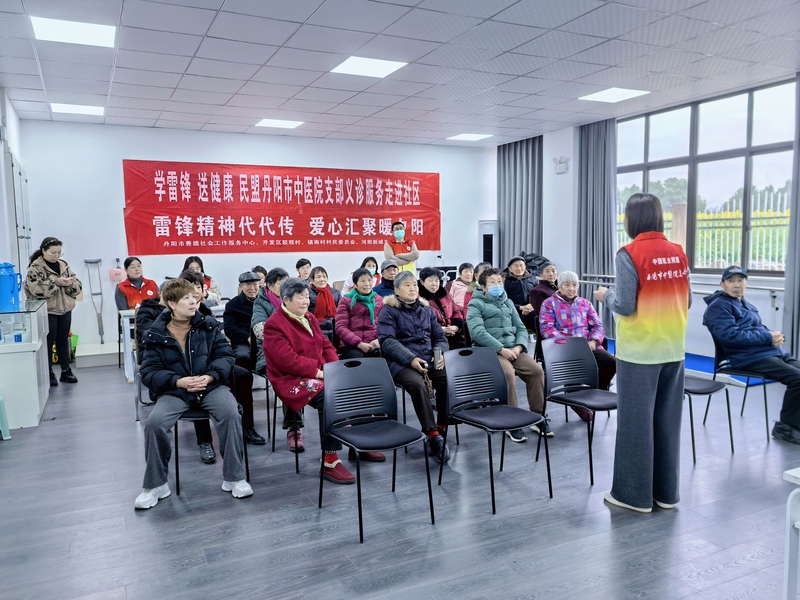 为弘扬雷锋精神,践行民盟“奔走国是、关注民生”的优良传统, 3月3日上午,民盟丹阳市中医院支部组织盟员,走进丹阳市河阳新城为老服务中心,开展“学雷锋送健康”科普义诊活动,以实际行动为基层群众送上温暖与健康。 活动当天,社区为老服务中心的活动室里坐满了前来咨询的爷爷奶奶,不少居民听说有中医院的专家来义诊,特意带着病历和检查报告前来咨询。