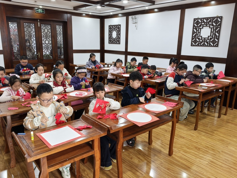 文化讲解之余,活动还设置了剪窗花手工体验环节,韩利老师现场指导市民体验这一传统民间艺术。红纸翻飞,剪刀游走,大家亲手剪出象征富贵的牡丹、寓意吉祥的“福”字等各式窗花,将对生活的热爱、对节日的美好期盼融入指尖创作。