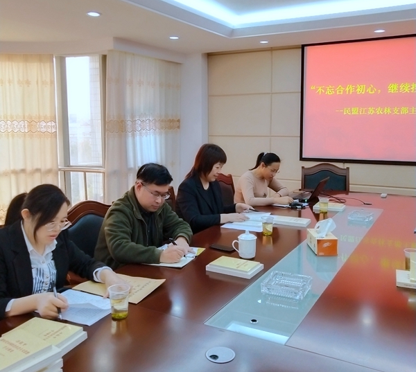 11月1日下午,民盟江苏农林支部在综合楼703会议室组织开展了“不忘合作初心,继续携手前进”主题教育活动学习会,支部副主委张小华主持会议。 张小华带领大家认真学习了《习近平新时代中国特色社会主义思想学习纲要》、习近平总书记关于加强和改进统一战线工作的重要思想、关于多党合作的重要论述等重要文献。这是民盟江苏农林支部按照前期制定的“不忘合作初心,继续携手前进”主题教育活动实施方案,成立学习领导小组并进行动员部署,引导全体盟员自主学习后集体深入学习。
