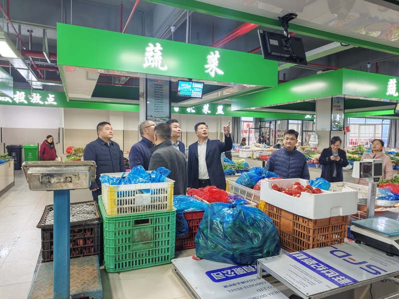 在利民农贸市场,调研组现场察看市场便民服务配套设施与精细化管理落实情况。