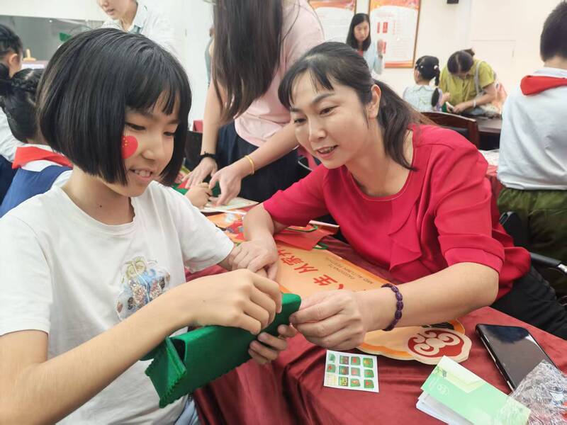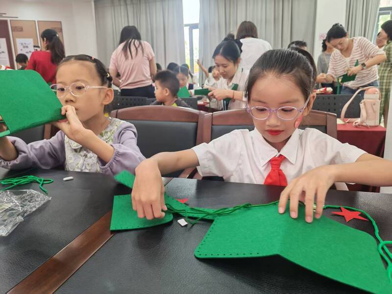 理论宣讲后,一场别开生面的手工制作环节拉开帷幕。孩子们在盟员和家长的协助下,兴致勃勃地学习制作军包,在动手实践中进一步厚植爱国情感,体会革命年代的奋斗精神。现场氛围热烈,孩子们专注的神情与创意的表达,成为活动中一道亮丽的风景线。