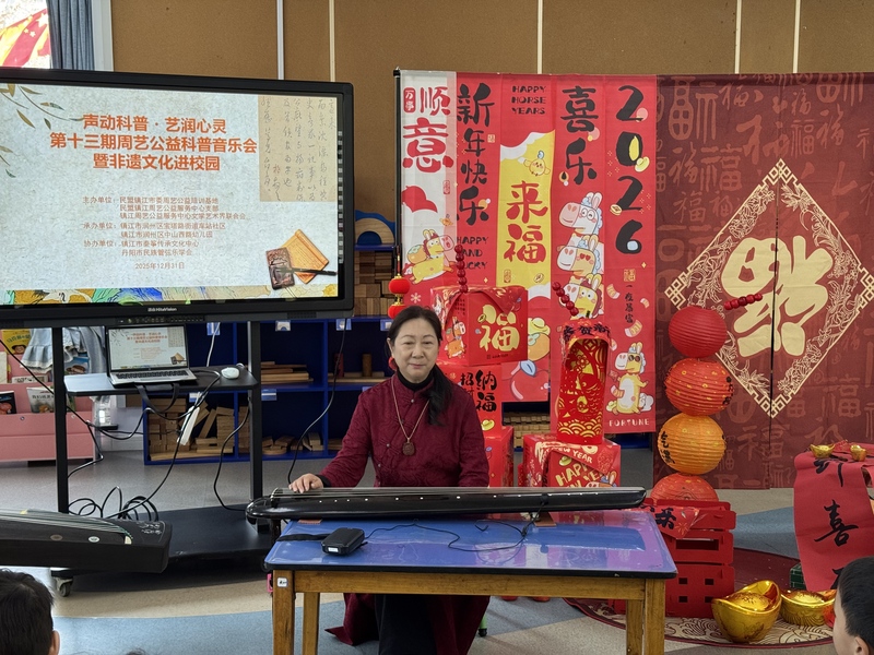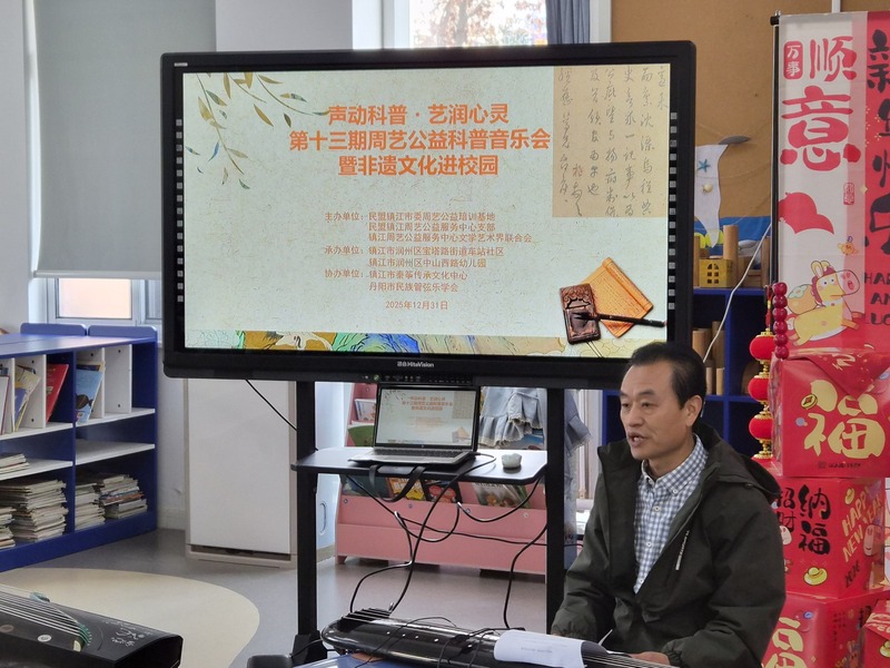 | 岁末迎新,雅韵启智。12月31日,“声动科普・艺润心灵”第十三期江苏镇江周艺公益科普音乐会暨非遗文化进校园活动,在镇江市润州区中山西路幼儿园温情启幕。来自镇江周艺公益的三名志愿者,走进校园与孩子们零距离互动,将非遗古韵与科普知识相融,献上一场浸润心灵的传统文化盛宴,为2025年画上圆满句点,也为2026年非遗传承与公益科普工作拉开崭新序幕。