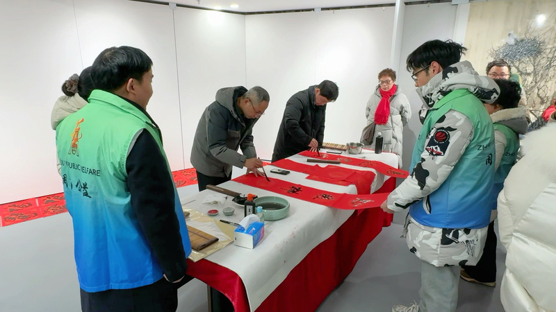 活动现场还举办了“迎新春·送祝福”书法创作活动。镇江市京口区文联主席邹辉明、中国书法家协会会员王欣现场挥毫泼墨,为市民书写春联和“福”字。“春满人间福满堂,天增岁月人增寿”“平安喜乐常相伴,如意吉祥总相随”等吉祥话语,承载着美好祝愿,受到市民热烈欢迎。现场气氛温馨热烈,充满了浓浓的年味。 据了解,本次活动不仅服务现场市民,部分春联和“福”字还将由周艺公益的志愿者送到社区困难家庭和孤寡老人家中,让更多人感受到节日的温暖。镇江周艺公益服务中心副理事长、民盟支部主委王琮琪表示,公益的意义在于共享,希望通过这样的活动让更多人亲近艺术,让困难群体也能感受到新春的喜悦。