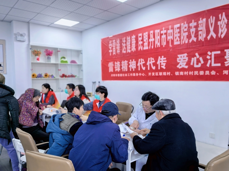 为弘扬雷锋精神,践行民盟“奔走国是、关注民生”的优良传统, 3月3日上午,民盟丹阳市中医院支部组织盟员,走进丹阳市河阳新城为老服务中心,开展“学雷锋送健康”科普义诊活动,以实际行动为基层群众送上温暖与健康。 活动当天,社区为老服务中心的活动室里坐满了前来咨询的爷爷奶奶,不少居民听说有中医院的专家来义诊,特意带着病历和检查报告前来咨询。