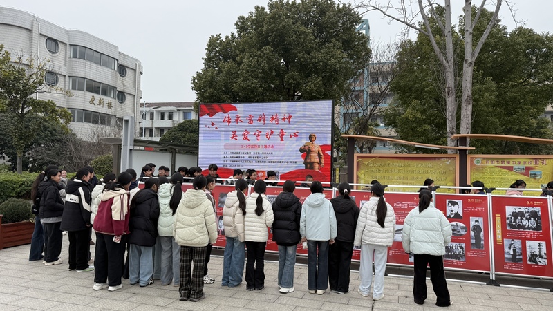 | 为纪念雷锋同志,弘扬榜样力量,引导青少年传承红色基因,在第六十三个“学雷锋纪念日”到来之际,民盟镇江市丹阳文化支部积极发挥文化界别优势,携手丹阳总前委旧址纪念馆、皇塘镇“八姑娘民兵班”等单位,共同承办“平凡而伟大的人生”——雷锋生平事迹主题展览。3月5日,展览先后走进丹阳市蒋墅中心小学与鹤溪中学,以文化浸润的方式,为两校师生带来一场深刻而生动的新时代文明实践课。