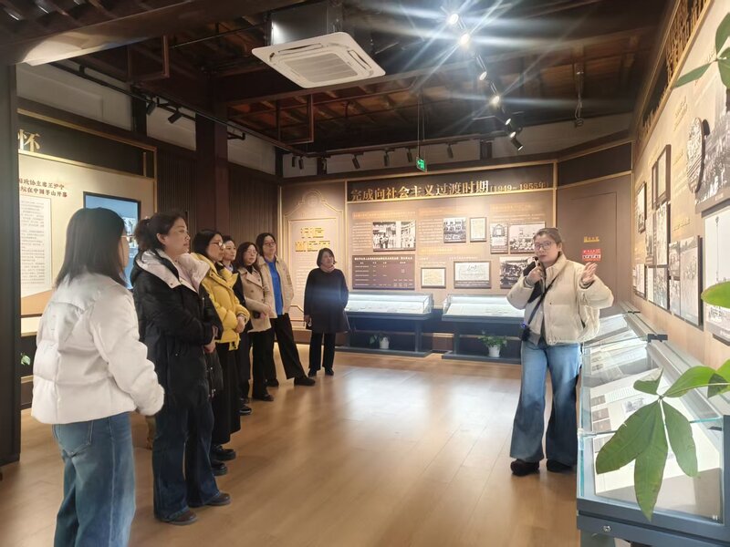 在严惠宇故居(镇江盟史馆),女盟员们怀着崇敬之情,认真聆听讲解,观看史料展陈,深入了解爱国实业家严惠宇先生的光辉事迹。作为“镇江三老”之一,严惠宇先生一生秉持“实业救国、教育兴邦”的坚定信念,为地方发展和民族复兴作出了重要贡献。从钱庄学徒到实业先驱,从兴办教育到无偿捐赠文物,先生以奉献传家,用一生践行爱国初心。镇江盟史馆内的一件件实物、一幅幅照片、一段段文字,生动展现了民盟先贤与国家同呼吸、与民族共命运的赤子情怀。大家深刻感悟到,爱国奉献不仅是历史的传承,更是新时代民主党派成员矢志不渝的精神底色。
